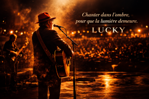 "Ce soir, j'ai croisé Lucky. Pas une bête de scène, pas un cri, juste un homme, sa guitare, ses musiciens... et des silences plein de vérité. Il chante comme on murmure. Il parle au creux de l'âme. Ses mots tombent doucement, comme la cendre d'un feu ancien. Et sans qu'on s'en rende compte, il touche. Il gratte là où ça fait beau. A la fin, je n'ai pas applaudi. J'ai respiré. Lucky ne donne pas un concert. Il offre un moment de vie qu'on croyait perdu. Et c'est bouleversant..."